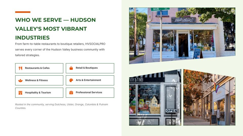 We help Hudson Valley businesses dominate Instagram, TikTok, and Facebook. From audits to full management, we handle the social so you can handle the business